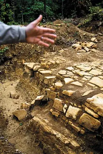 挖掘工作的第一个重大发现出现在2006年春天。当志愿者们沿着维索契察山的北坡向下挖掘约一米深时,他们遇到了一层巨大的石板。这些石板呈现出令人惊讶的规则性:表面相对平整,边缘近乎直角,尺寸在几厘米到几米不等。奥斯马纳吉奇立即宣称这是古代建造者铺设的"金字塔外壳”——类似于吉萨金字塔的石灰石外层,只是材料不同。